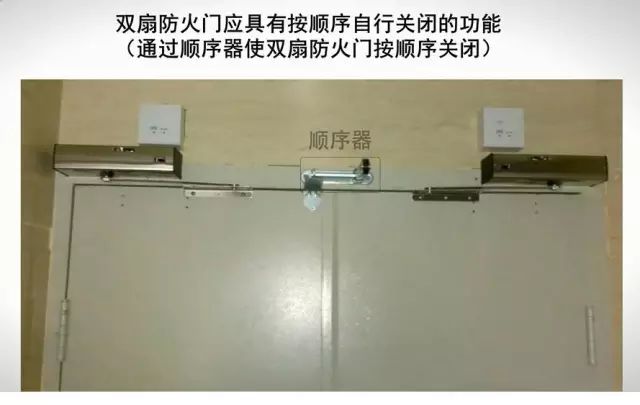 雙扇、多扇防火門設置蓋縫板或止口的應安裝順序器(特殊部位使用除外)
