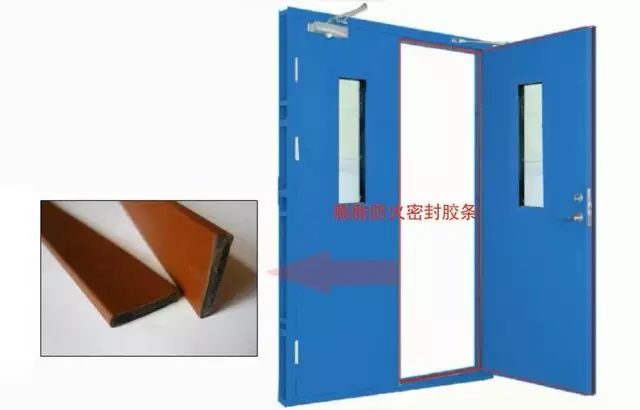 防火門門框與門扇、門扇與門扇的縫隙處應嵌裝防火密封件。比如:膨脹防火密封膠條等。(防火密封件應經國家認可授權檢測機構檢驗合格)