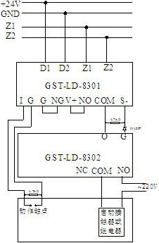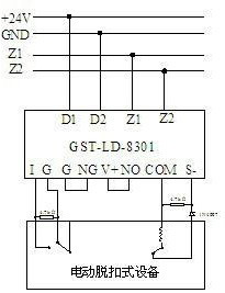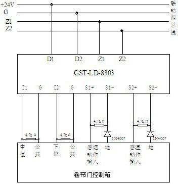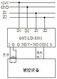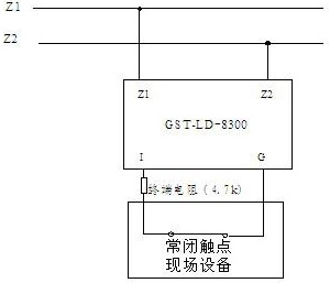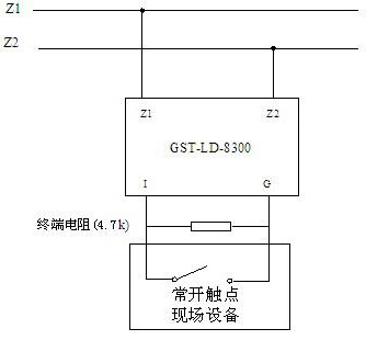 Z1、Z2:接火災(zāi)報(bào)警控制器信號(hào)二總線,無(wú)極性