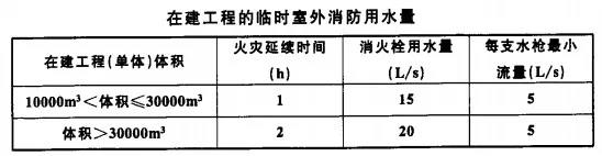 2、臨時消防用水量應為臨時室外消防用水量與臨時室內消防用水量之和。