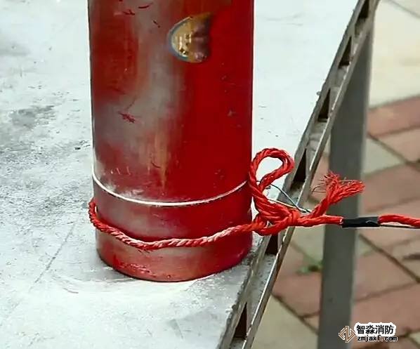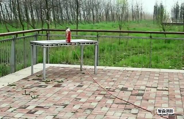 我們用一根繩子拴住一個過期的滅火器,在安全距離外扯動繩子,讓滅火器跌落在地,看看會發生什么。