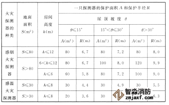 (2)感煙火災探測器和A1、A2、B型感溫火災探測器的保護面積和保護半徑,應按表2確定;C、D、E、F、G型感溫火災探測器的保護面積和保護半徑,根據生產企業(yè)設計說明書確定,但不應超過表2的規(guī)定。