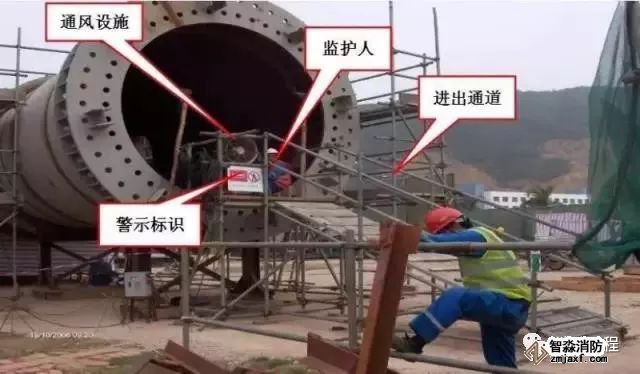 要有后備應急措施(消防、救護)(準備好安全帶、救生索、救援三角架等應急設備)。