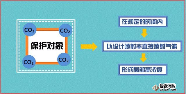 局部應用滅火系統指在規定的時間內向保護對象以設計噴射率直接噴射氣體,在保護對象周圍形成局部高濃度,并持續一定時間的滅火系統。