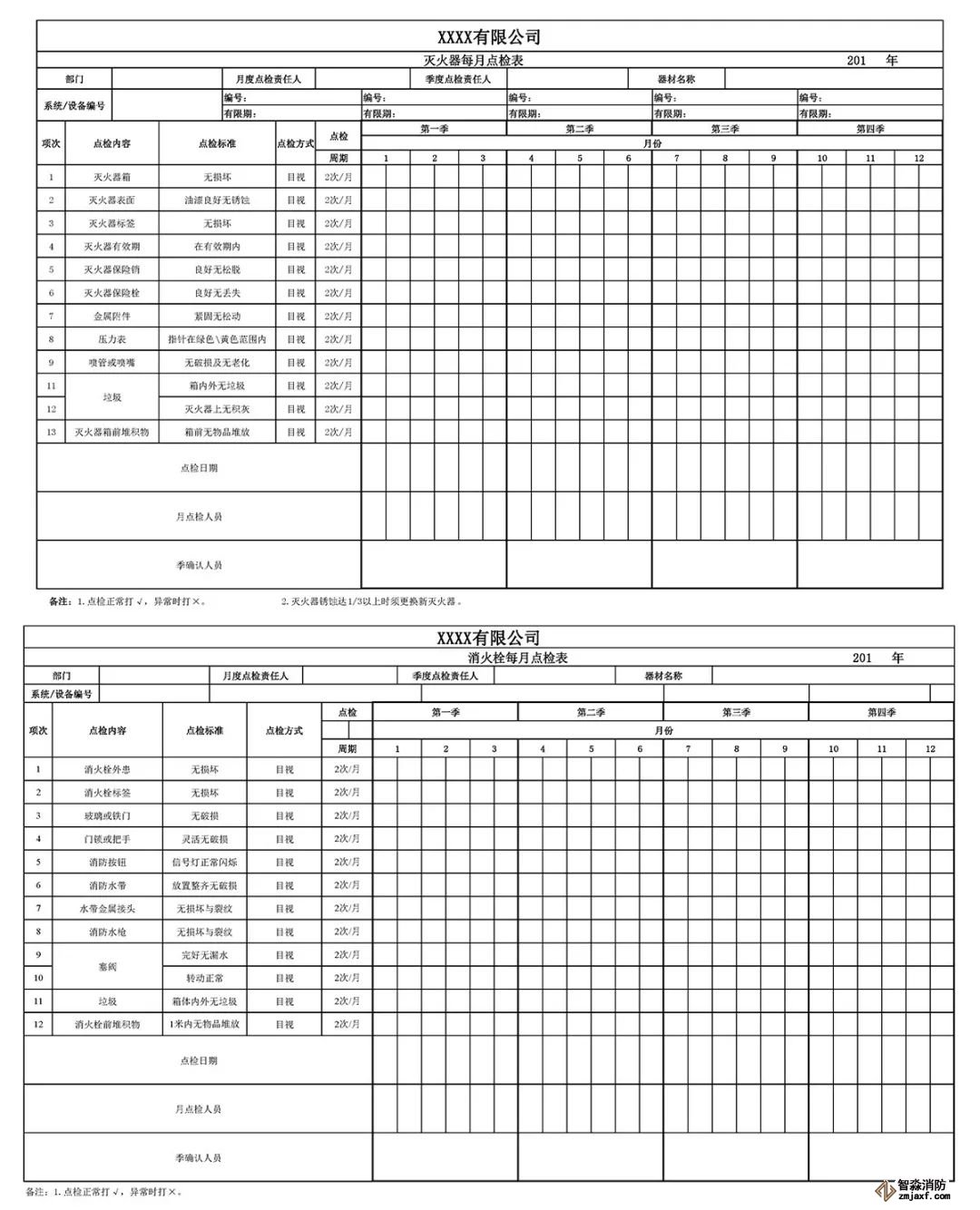 【收藏】滅火器和消火栓點檢表模板!