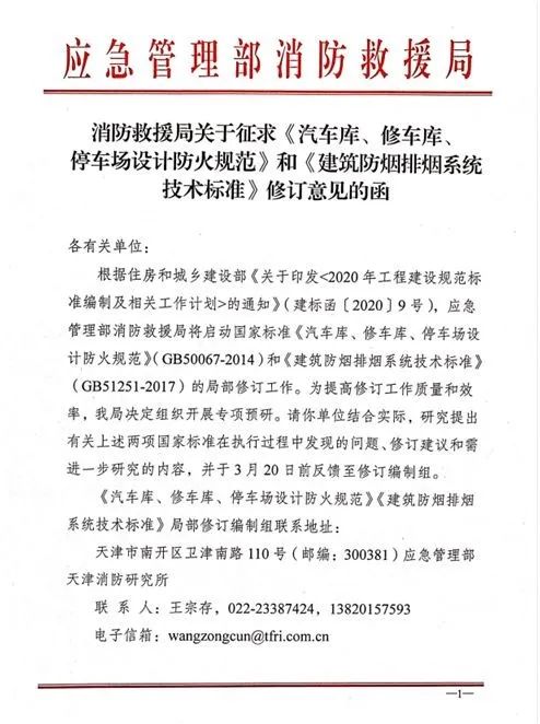 部局通知:防排煙系統標準和汽車庫設計防火規范征求修訂意見