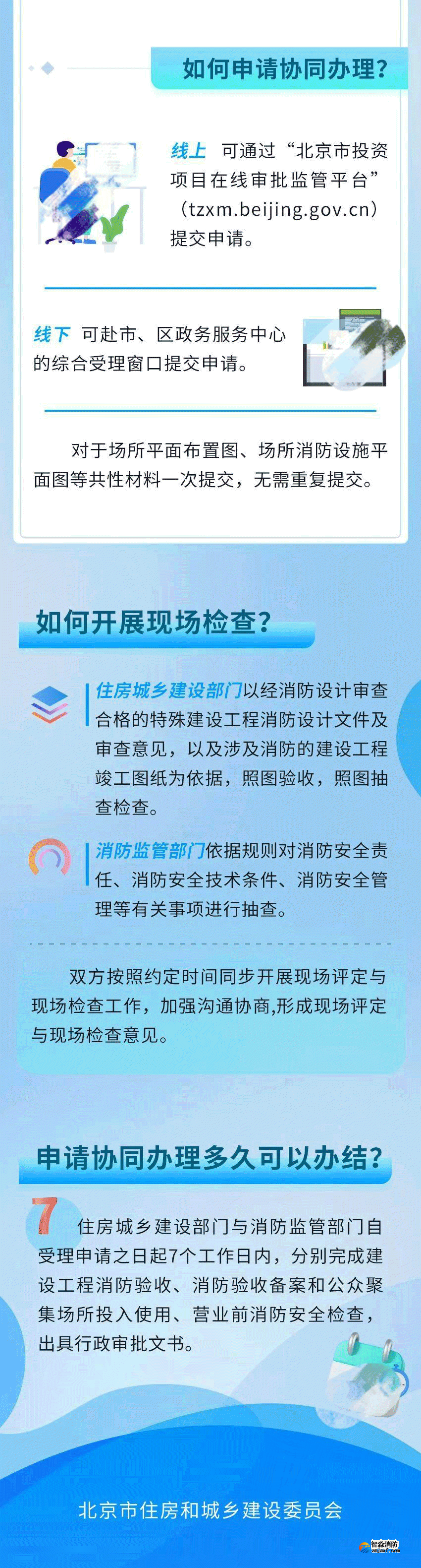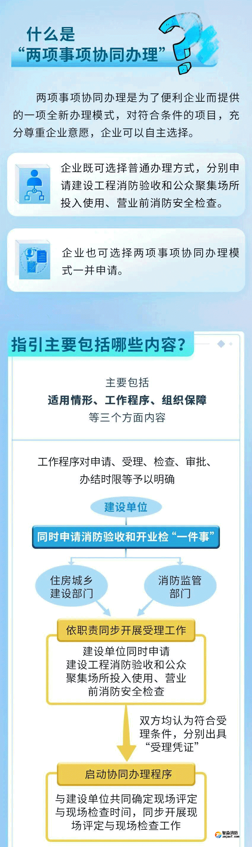 一圖讀懂《北京市建設工程消防驗收和公眾聚集場所投入使用、營業前消防安全檢查協同辦理工作指引(試行)》