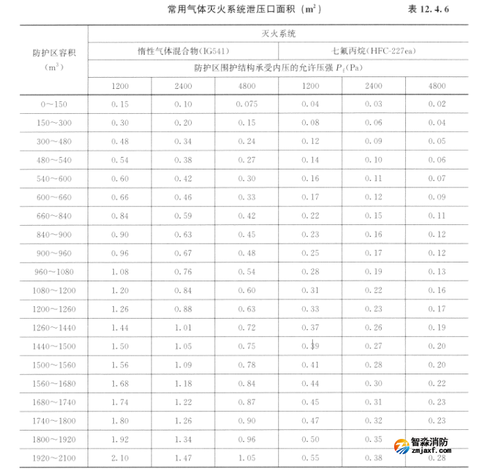 常用氣體滅火系統泄壓口面積