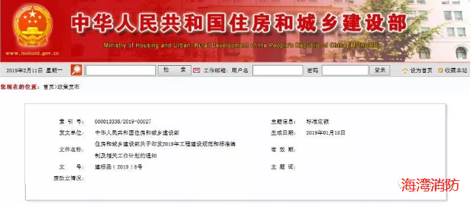 近日,住房和城鄉(xiāng)建設(shè)部發(fā)布了關(guān)于印發(fā)《2019年工程建設(shè)規(guī)范和標準編制及相關(guān)工作計劃的通知》,其中提到了2019年跟消防相關(guān)的部分規(guī)范的制定與修訂,我們一起來看一下吧!