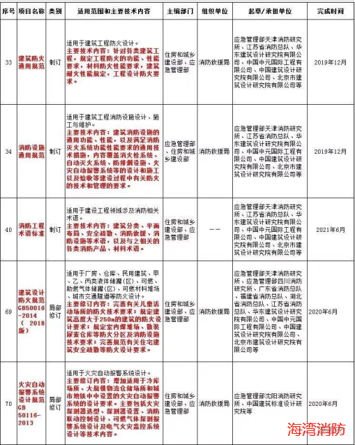 本頁關(guān)鍵詞:重磅!2019年數(shù)十項消防相關(guān)規(guī)范將被修訂!