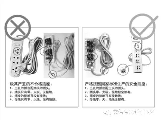此外,我國1996年首次制定電源插座標準時,明確規定插板上有三極插孔,但插座自帶插頭只有兩個插銷的插座(俗稱兩芯插座)不合格。這類插座缺少一根地線,在使用過程中,一旦電器內部某個絕緣部件損壞,電流將會布滿整個電器表面,極易引發觸電事故。