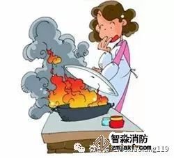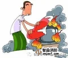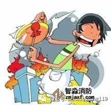 電器起火時,首先要切斷電源,用干粉或氣體滅火器、濕毛毯等將火撲滅,不可用水撲救。如果電視機著火,應從側面撲救,以防顯像管爆裂傷人。 ![]() 油鍋著火時,蓋上鍋蓋滅火,不能用水撲救。 |
