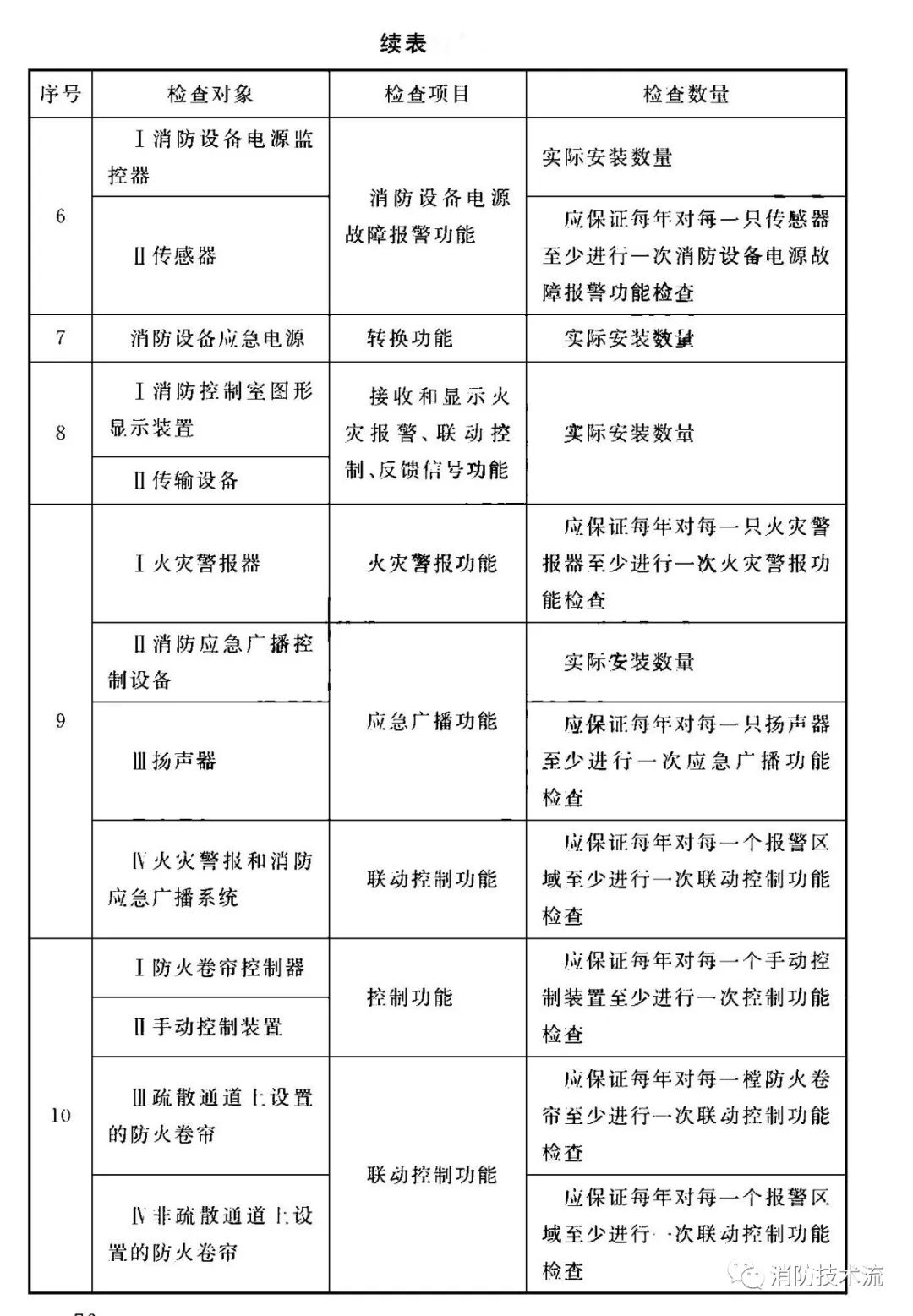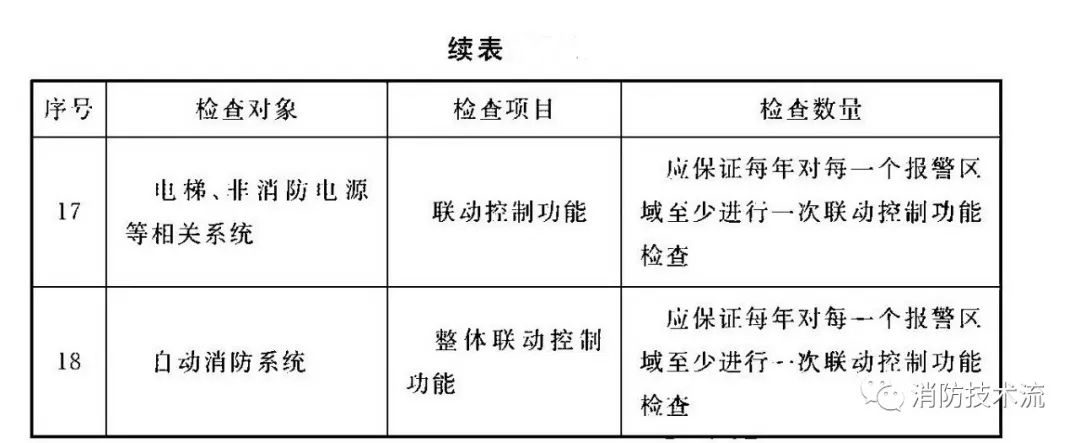 根據《 火災自動報警系統施工及驗收標準》要求,每年應按表中規定的檢查項目、數量對系統設備的功能、各分系統的聯動控制功能進行檢查。