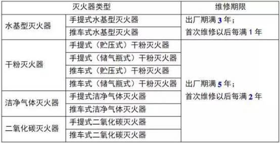 3.2 滅火器的維修期限應符合下表的規定。