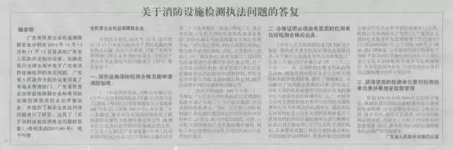 2011年4月13日,廣東省人民政府法制辦公室刊登《關(guān)于消防設(shè)施檢測(cè)執(zhí)法問題的答復(fù)》,明確消防設(shè)施須經(jīng)檢測(cè)合格方能申請(qǐng)消防驗(yàn)收,合格證明必須由有資質(zhì)的檢測(cè)單位經(jīng)檢測(cè)合格后出具,盡管《消防法》規(guī)定消防技術(shù)服務(wù)機(jī)構(gòu)必須依法取得資質(zhì),至于依什么法并未作出明確規(guī)定。