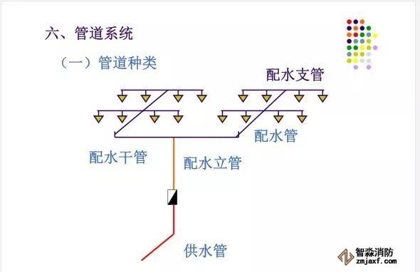 消防系統可根據其功能或控制原理又具體可以分為消防栓系統、自動噴淋系統、樓頂的增壓穩壓系統、消防電梯系統、排煙通風系統、消防集中報警與聯動控制系統及其它輔助子系統。室內消防栓給水系統主要部件及功能: